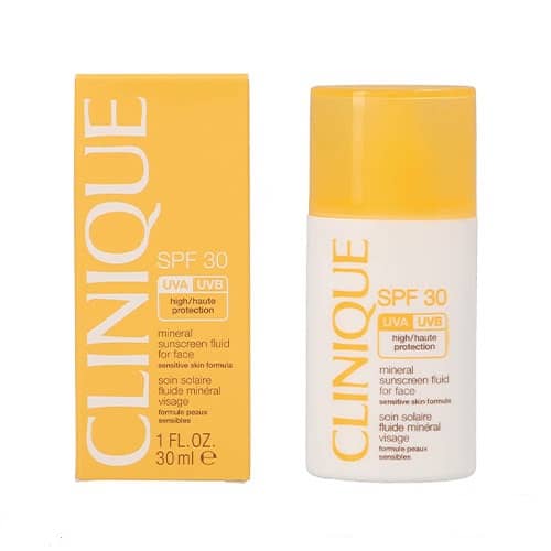 فلوئید ضد آفتاب بی رنگ SPF30 کلینیک یک نوع ضد آفتابی مینرال به صورت مایع است که استفاده از آن بسیار سادهتر از سایر ضد آفتابها است. این فلویید دارای خاصیت ضد آب است. در مقابل آب و عرق همچنان مقام بوده و ماندگاری خود را بر روی پوست حفظ میکند.